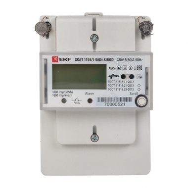 Счетчик электрической энергии однофазный многотарифный SKAT 115E/1-5(60) SIROD (встроенное реле) EKF PROxima 2 тарифа МСК+9