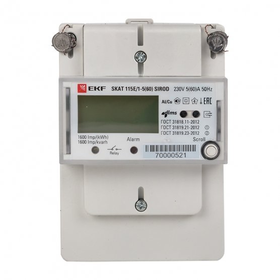Счетчик электрической энергии однофазный многотарифный SKAT 115E/1-5(60) SIROD (встроенное реле) EKF PROxima 3 тарифа МСК+8
