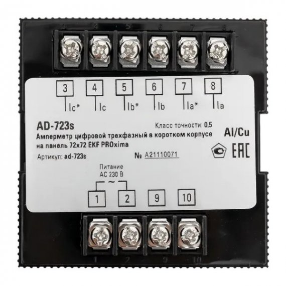 EKF AD-723s Амперметр цифровой на панель 72x72 (квадратный вырез) трехфазный