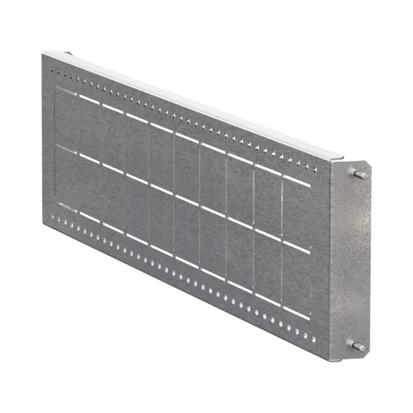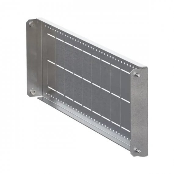 Элементы секционирования предназначены для внутреннего разделения НКУ до формы 4б. Изготовленные из стали 1,5 мм, они обладают высокой прочностью. Все комплектующие поставляются с крепежом, готовы к монтажу. Перфорация на элементах позволяет без конструкторской документации, простым подсчетом квадратов, выполнить стандартную проходку. Перегородке можно придать любую правильную геометрию.
