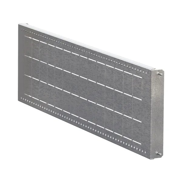 Элементы секционирования предназначены для внутреннего разделения НКУ до формы 4б. Изготовленные из стали 1,5 мм, они обладают высокой прочностью. Все комплектующие поставляются с крепежом, готовы к монтажу. Перфорация на элементах позволяет без конструкторской документации, простым подсчетом квадратов, выполнить стандартную проходку. Перегородке можно придать любую правильную геометрию.