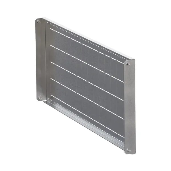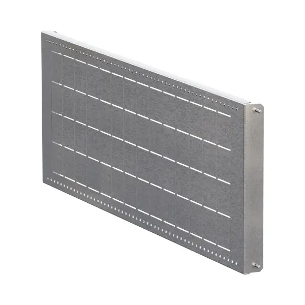Элементы секционирования предназначены для внутреннего разделения НКУ до формы 4б. Изготовленные из стали 1,5 мм, они обладают высокой прочностью. Все комплектующие поставляются с крепежом, готовы к монтажу. Перфорация на элементах позволяет без конструкторской документации, простым подсчетом квадратов, выполнить стандартную проходку. Перегородке можно придать любую правильную геометрию.