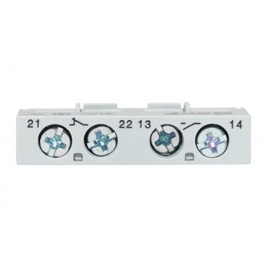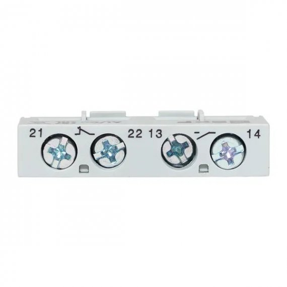 Дополнительный аксессуар для автомата пуска (защиты) двигателя. Фронтальный блок контактов. Он содержит одну пару нормально разомкнутых (НО/NO) и одну пару нормально замкнутых (НЗ/NC) контактов. НО контакт замыкается только когда АПД включен принудительно (кнопкой или сигналом управления). Используется для подачи сигнала "Двигатель работает" (например, на лампу "ВКЛ" на щите). НЗ контакт размыкается при включении АПД. Используется для сигнализации "Двигатель остановлен" или в цепях блокировок (например, чтобы запретить одновременный запуск двух двигателей). Этот блок НЕ СРАБАТЫВАЕТ при аварийном отключении защитой. Устанавливается на АПД спереди. Используется для АПД-32 и GV2P.