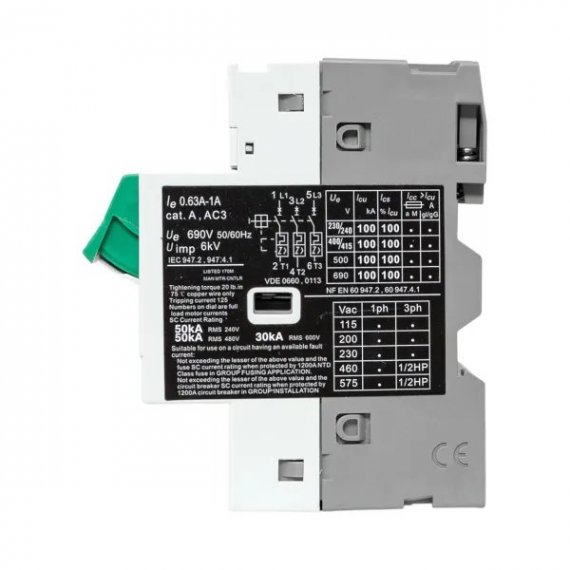 | Диапазон установки расцепителя перегрузки, А | 0,63...1,0 |