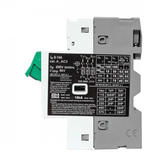 | Диапазон установки расцепителя перегрузки, А | 9...14 |