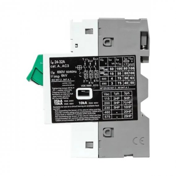 | Диапазон установки расцепителя перегрузки, А | 24...32 |