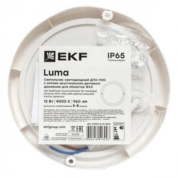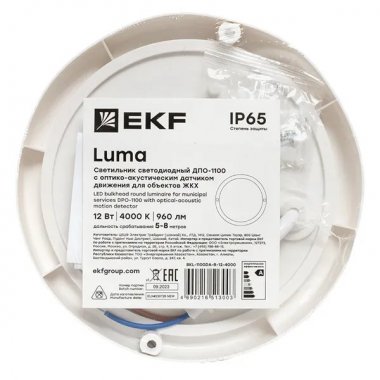 Светильник светодиодный ЖКХ круг ДПО-1100 с оптико-акустическим датчиком движения 12Вт 4000K IP65 LUMA EKF