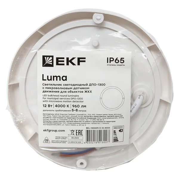 Светильник светодиодный ЖКХ круг ДПО-1300 с микроволновым датчиком движения 12Вт 4000K IP65 LUMA EKF