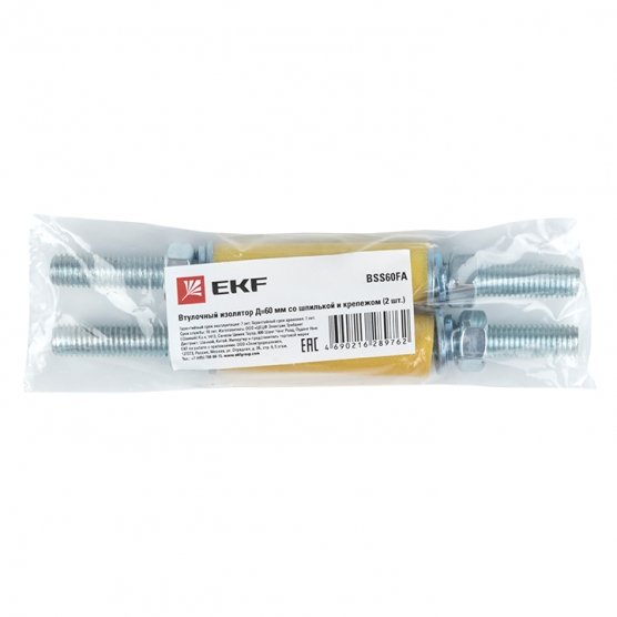 EKF BSS60FA Втулочный изолятор Д=60 мм со шпилькой и крепежом (2 шт)