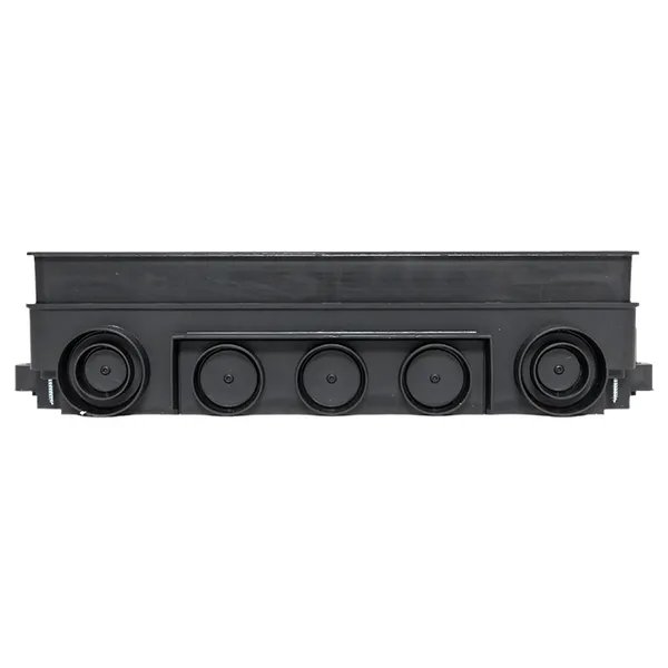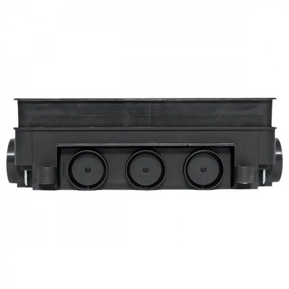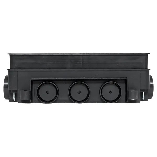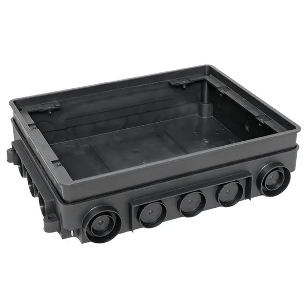 Коробка напольная под лючок C-Line 24. Используется с лючком C-Line 12 и C-Line 24 (cl-ln-12 и cl-ln-24). Предназначена для монолитных бетонных полов, ввод кабеля с помощью электромонтажных труб и/или металлического лотка. Предназначен для бетонного слоя 80 - 95 мм. Требуемая высота коробки устанавливается посредством увеличения высоты внутреннего вкладыша с помощью шурупов по углам коробки. В комплекте идет укрывающая пластина, защищающая коробку от попадания бетона при заливке.