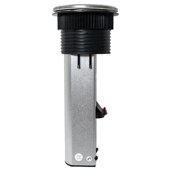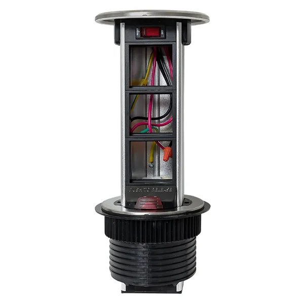 Встраиваемая мини-колонна, 6 модулей C-Line. Встраиваемая мини-колонна – это изделие цилиндрической формы с ручным выдвижным механизмом, предназначенное для установки ЭУИ стандарта 45х45. Изделие поставляется в комплекте с сетевым кабелем питания (2 метра). В нижней крышке колонны предусмотрены 2 дополнительных кабельных ввода. Монтаж производится в предварительно подготовленное отверстие диаметром Ø95-100 мм. Допустимая толщина поверхности стола 10-45 мм.