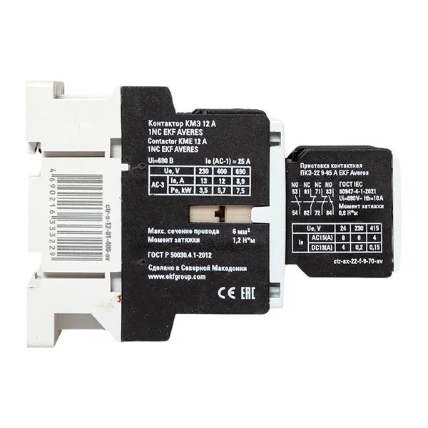 EKF ctr-s-12-01-400-av-22 Комплект КМЭ 12А 1NC 400В АС с дополнительными контактами 2НО+2НЗ