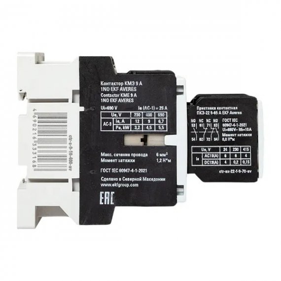 Комплект КМЭ 9А 1NO 400В АС с дополнительными контактами 2НО+2НЗ EKF AVERES