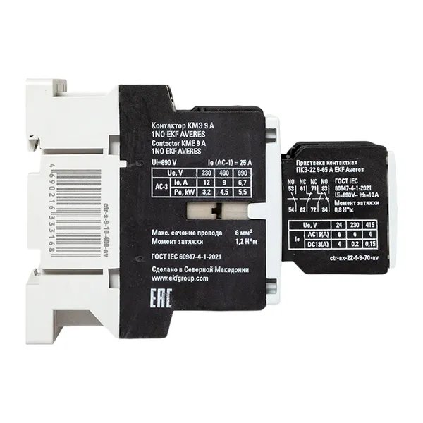 EKF ctr-s-9-10-400-av-22 Комплект КМЭ 9А 1NO 400В АС с дополнительными контактами 2НО+2НЗ