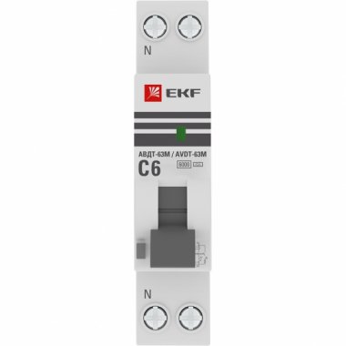 Дифференциальный автомат АВДТ-63М 6А/30мА (1мод, хар. C, электронный, тип A) 6кА EKF PROxima