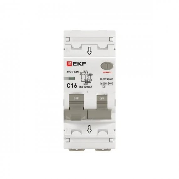 Автоматический выключатель дифференциального тока АВДТ-63N 1P+N 16А характеристика C 100мА тип AC электронный 6кА PROXIMA EKF