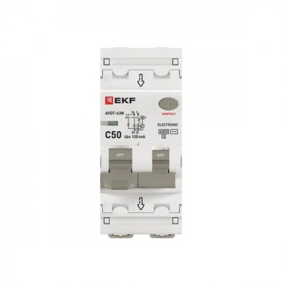Автоматический выключатель дифференциального тока АВДТ-63N 1P+N 50А характеристика C 100мА тип AC электронный 6кА PROXIMA EKF