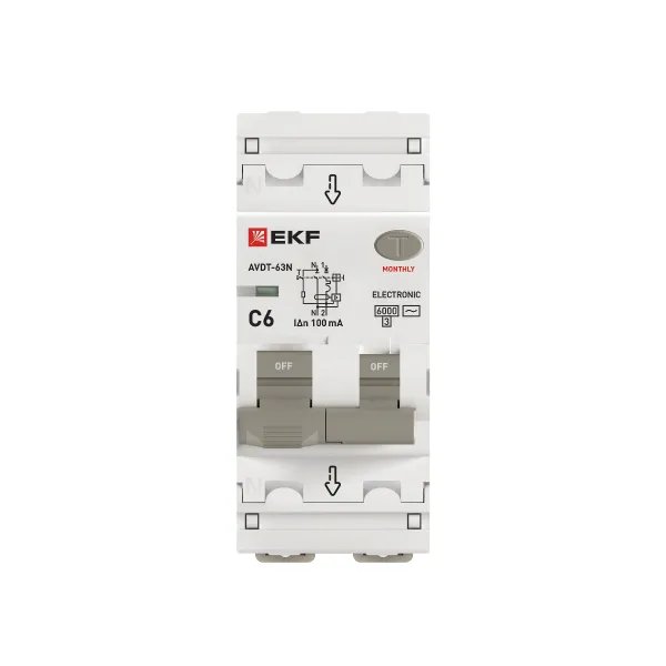Автоматический выключатель дифференциального тока АВДТ-63N 1P+N 6А характеристика C 100мА тип AC электронный 6кА PROXIMA EKF