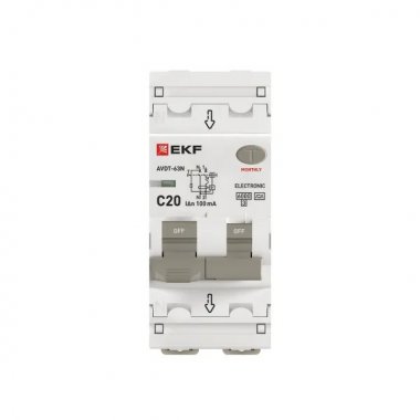 Автоматический выключатель дифференциального тока АВДТ-63N 1P+N 20А характеристика C 100мА тип A электронный 6кА PROXIMA EKF