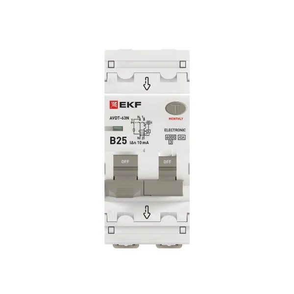 Автоматический выключатель дифференциального тока АВДТ-63N 1P+N 25А характеристика B 10мА тип A электронный 6кА PROXIMA EKF