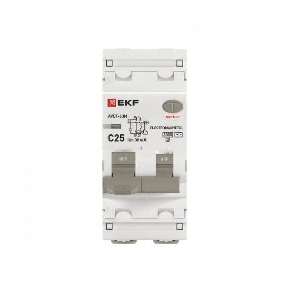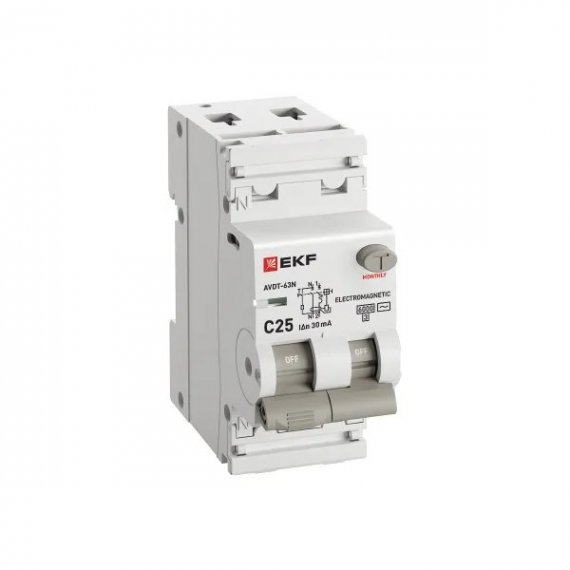 Автоматический выключатель дифференциального тока АВДТ-63N 1P+N 25А характеристика C 30мА тип AC электромеханический 6кА PROXIMA EKF