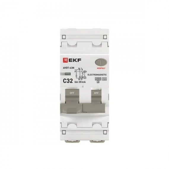 Автоматический выключатель дифференциального тока АВДТ-63N 1P+N 32А характеристика C 30мА тип A электромеханический 6кА PROXIMA EKF
