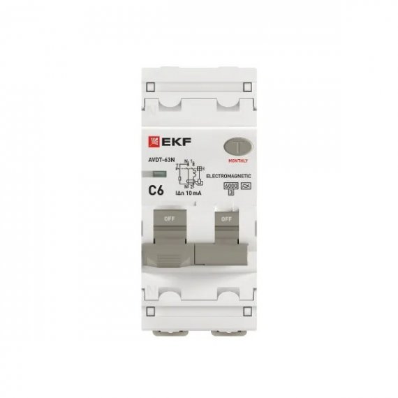Автоматический выключатель дифференциального тока АВДТ-63N 1P+N 6А характеристика C 10мА тип A электромеханический 6кА PROXIMA EKF