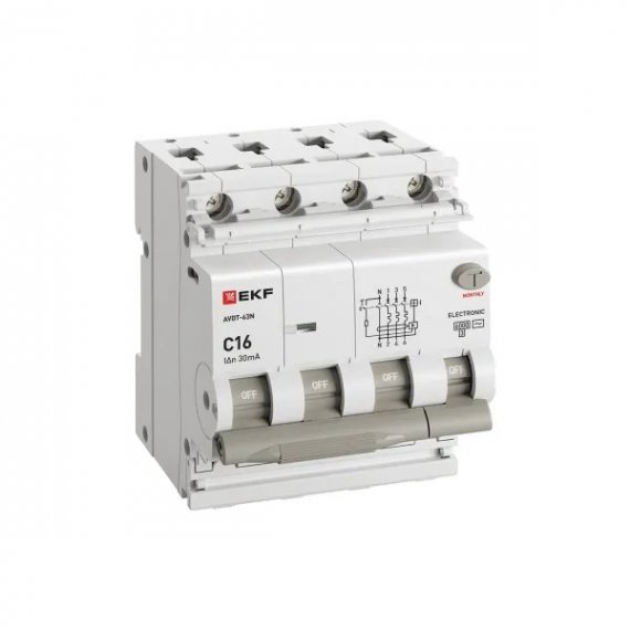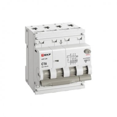 Автоматический выключатель дифференциального тока АВДТ-63N 3P+N 16А характеристика C 30мА тип AC электронный 6кА PROXIMA EKF