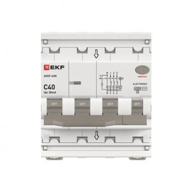 Автоматический выключатель дифференциального тока АВДТ-63N 3P+N 40А характеристика C 30мА тип AC электронный 6кА PROXIMA EKF