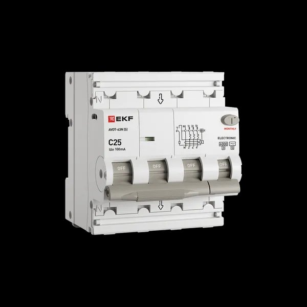 Автоматический выключатель дифференциального тока АВДТ-63N 3P+N (S) 25А характеристика C 100мА тип AC электронный селективный 6кА PROXIMA EKF