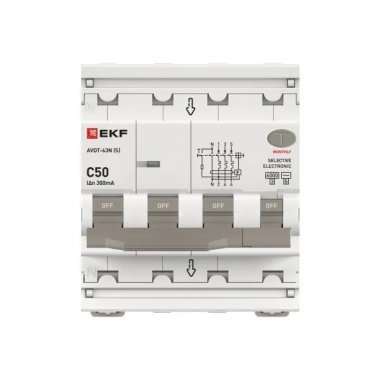 Автоматический выключатель дифференциального тока АВДТ-63N 3P+N (S) 50А характеристика C 300мА тип AC электронный селективный 6кА PROXIMA EKF