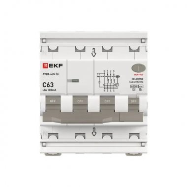 Автоматический выключатель дифференциального тока АВДТ-63N 3P+N (S) 63А характеристика C 100мА тип AC электронный селективный 6кА PROXIMA EKF
