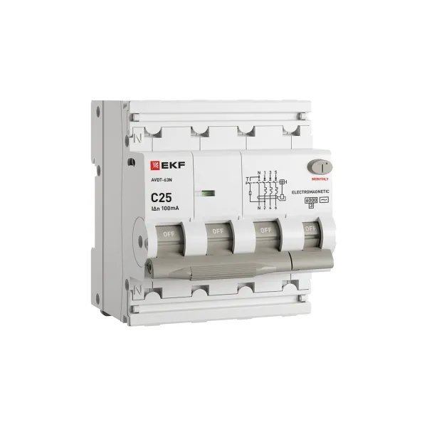Автоматический выключатель дифференциального тока АВДТ-63N 3P+N 25А характеристика C 100мА тип AC электромеханический 6кА PROXIMA EKF