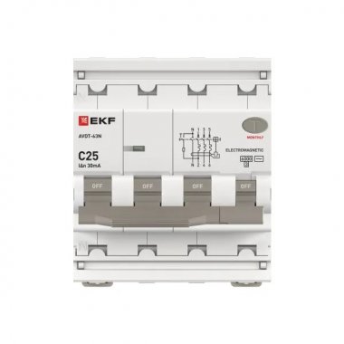 Автоматический выключатель дифференциального тока АВДТ-63N 3P+N 25А характеристика C 30мА тип AC электромеханический 6кА PROXIMA EKF