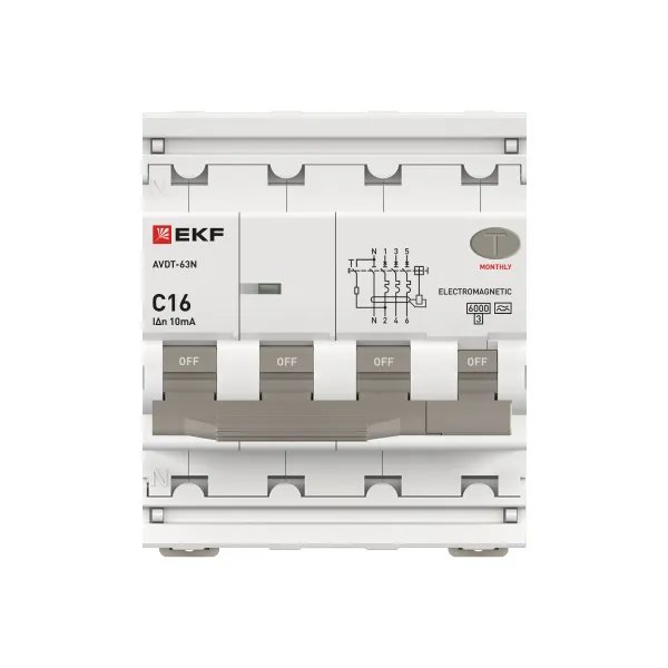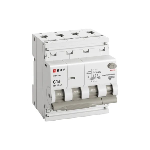 Автоматический выключатель дифференциального тока АВДТ-63N 3P+N 16А характеристика C 10мА тип A электромеханический 6кА PROXIMA EKF