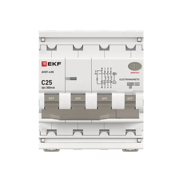 Автоматический выключатель дифференциального тока АВДТ-63N 3P+N 25А характеристика C 300мА тип A электромеханический 6кА PROXIMA EKF