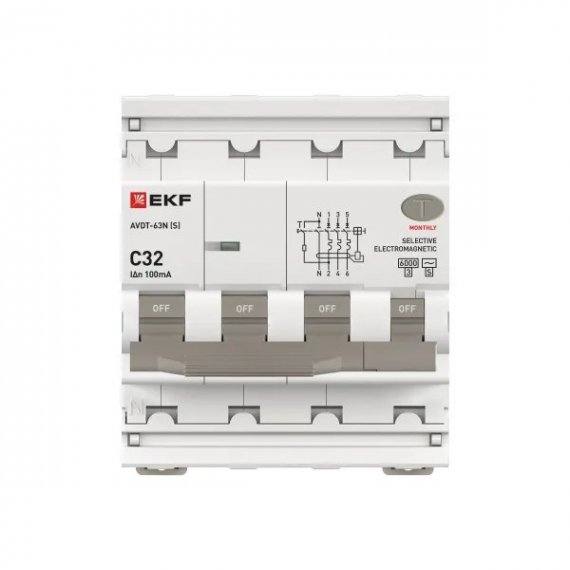 Автоматический выключатель дифференциального тока АВДТ-63N 3P+N (S) 32А характеристика C 100мА тип AC электромеханический селективный 6кА PROXIMA EKF