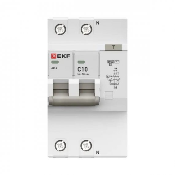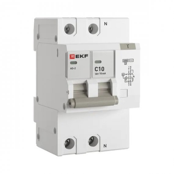 Автоматический выключатель дифференциального тока АД-2 2Р 10А характеристика C 10мА тип АС электронный 6кА PROXIMA EKF