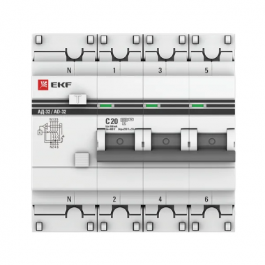 Дифференциальный автомат АД-32 3P+N 20А/100мА (тип АC) 4,5кА EKF PROxima