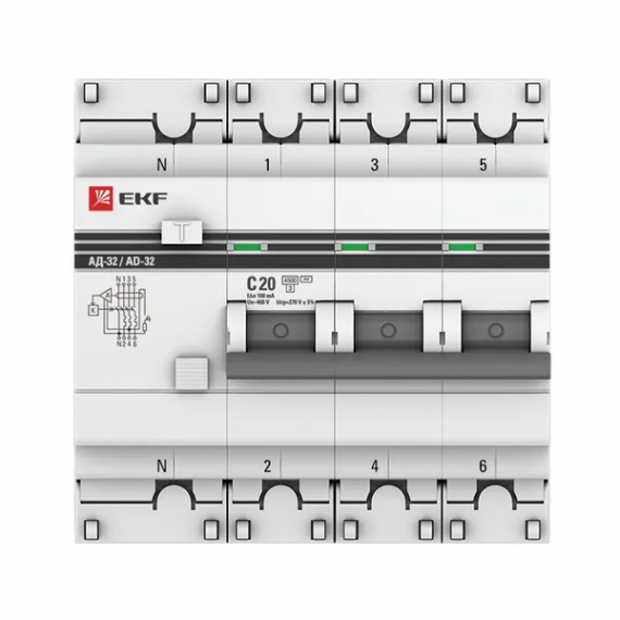 EKF DA32-20-100-4P-pro Дифференциальный автомат АД-32 3P+N 20А/100мА (тип АC) 4,5кА