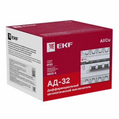 Дифференциальный автоматический выключатель АД-32 EKF PROxima представляет собой аппарат, сочетающий функции автоматического выключателя с устройством защитного отключения. При обнаружении автоматическим выключателем в защищаемом участке сети тока утечки (повреждения) на землю или сверхтока (тока перегрузки или короткого замыкания) происходит срабатывание устройства, приводящее к отключению защищаемой сети. Ассортимент АД-32 дополнен дифавтоматами АД-32 тип А и АД-32 селективными.