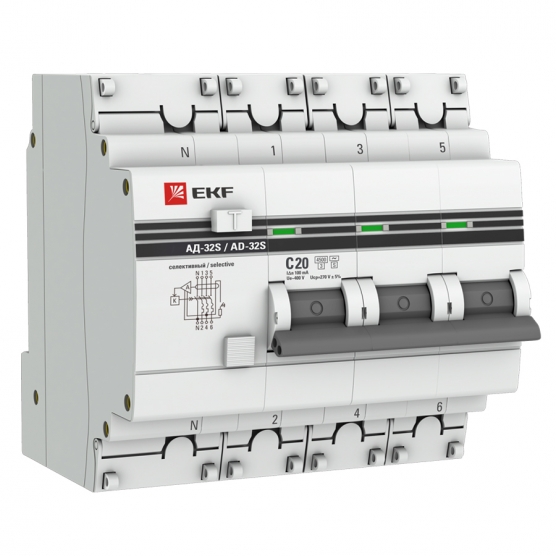 Дифференциальный автомат АД-32 (селективный) 3P+N 20А/100мА EKF PROxima