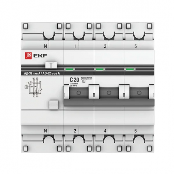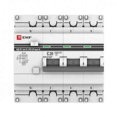 Дифференциальный автомат АД-32 3P+N 20А/30мА (тип А) 4,5кА EKF PROxima