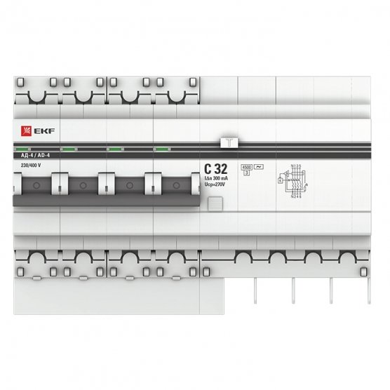 Дифференциальный автоматический выключатель АД-2(4) (S) EKF PROxima представляет собой аппарат, сочетающий функции автоматического выключателя с устройством защитного отключения. При обнаружении автоматическим выключателем в защищаемом участке сети тока утечки (повреждения) на землю или сверхтока (тока перегрузки или короткого замыкания) происходит срабатывание устройства, приводящее к отключению защищаемой сети. Особое отличие дифференциальных автоматов EKF – в наличии встроенного блока защиты от перенапряжения. АД-2 и АД-4 EKF PROxima выпускаются в стандартном и селективном (АД-2S, АД-4S) исполнениях.