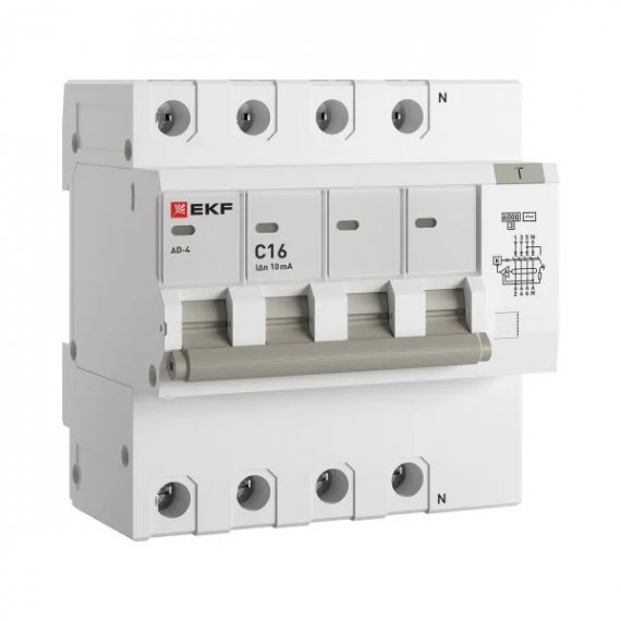 EKF DA4-6-16-10-pro Автоматический выключатель дифференциального тока АД-4 4Р 16А