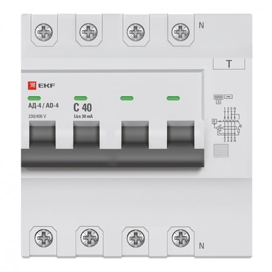 EKF DA4-6-40-30-pro Дифференциальный автомат АД-4 40А/ 30мА