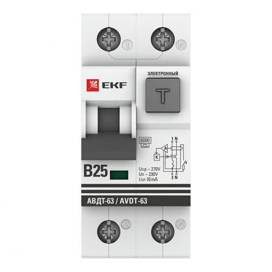 Дифференциальный автомат АВДТ-63 25А 10мА (характеристика B, электронный, тип А) 6кА EKF PROxima