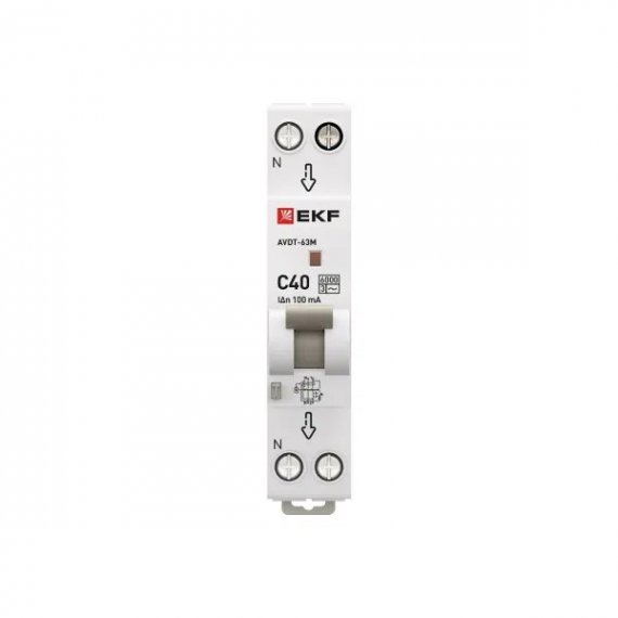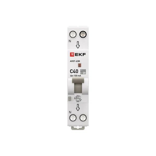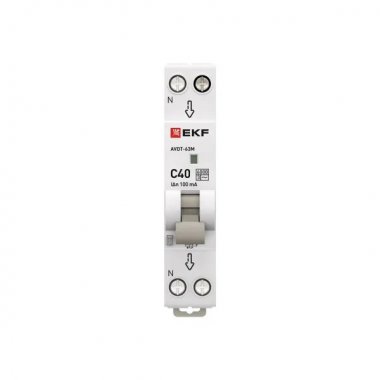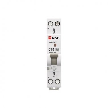 Автоматический выключатель дифференциального тока АВДТ-63М 1P+N 18мм 40А характеристика C 100мА тип AC электронный 6кА PROXIMA EKF
