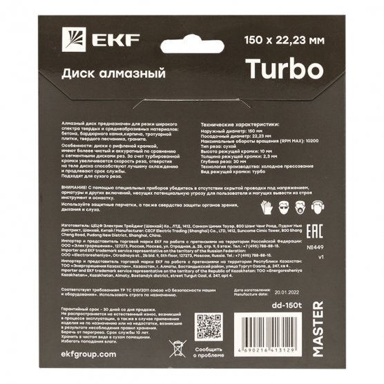 EKF dd-150t Диск алмазный Turbo (150х22.23 мм) Master