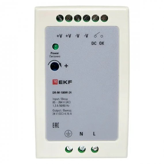 EKF DR-M-100W-24 Блок питания на дин рейку 100Вт,Uвх ~ 220 В AC m, Uвых - 24 В DC